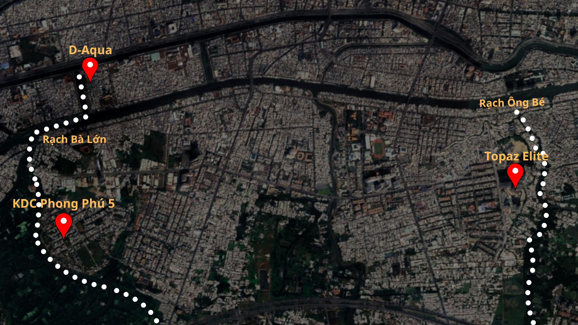 Vị trí các dự án hưởng lợi từ rạch Bà Lớn, Ông Bé sau cải tạo